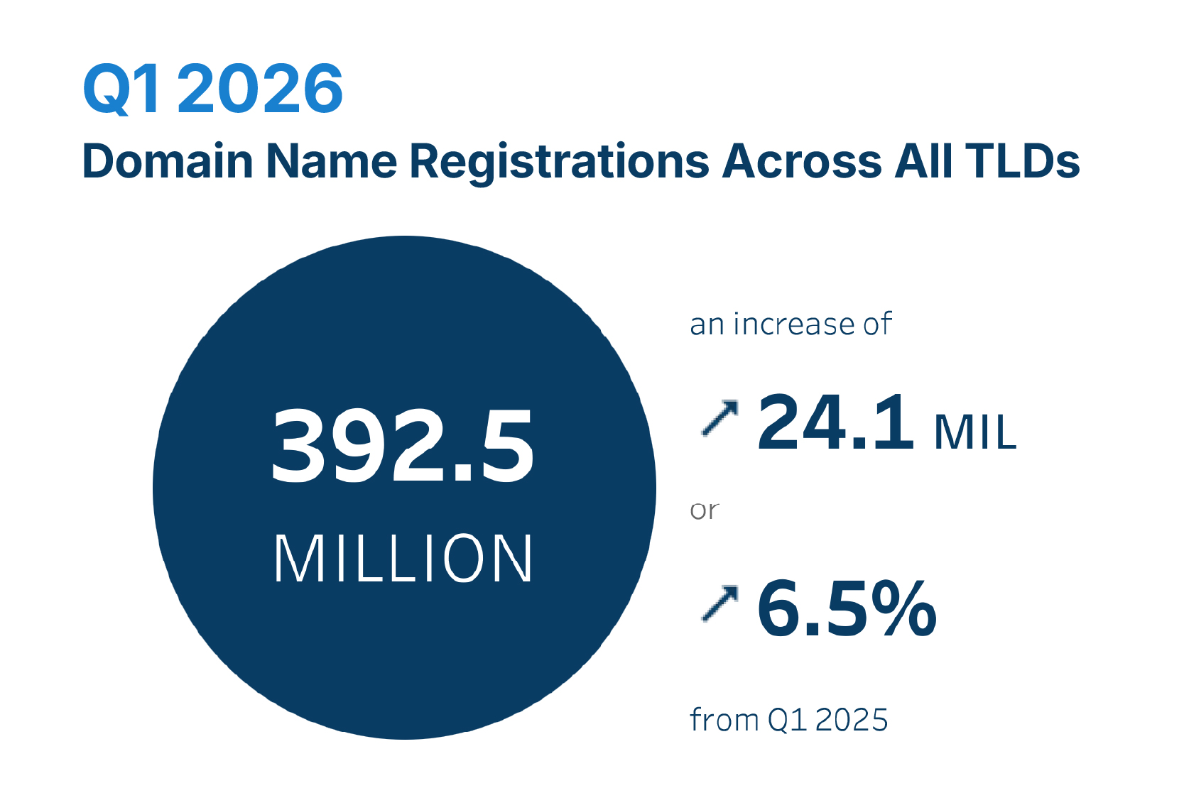 Today, the latest issue of The Domain Name Industry Brief Quarterly Report was released by DNIB.com, showing the first quarter of 2026 closed with 392.5 million domain name registrations across all top-level domains (TLDs), an increase of 5.6 million domain name registrations, or 1.4% compared to the fourth quarter of 2025. Domain name registrations increased by 24.1 million, or 6.5%, year over year.